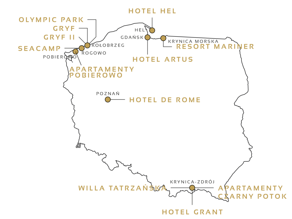 Grupa Hotele Polskie to sześć obiektów noclegowych, o szerokim standardzie świadczonych usług wypoczynkowych i wyjątkowym położeniu. Od obiektów kuracyjnych usytuowanych w miejscowościach uzdrowiskowych, po trzy oraz czterogwiazdkowe Hotele rodzinne i biznesowe położonych w samym centrum starego miasta.